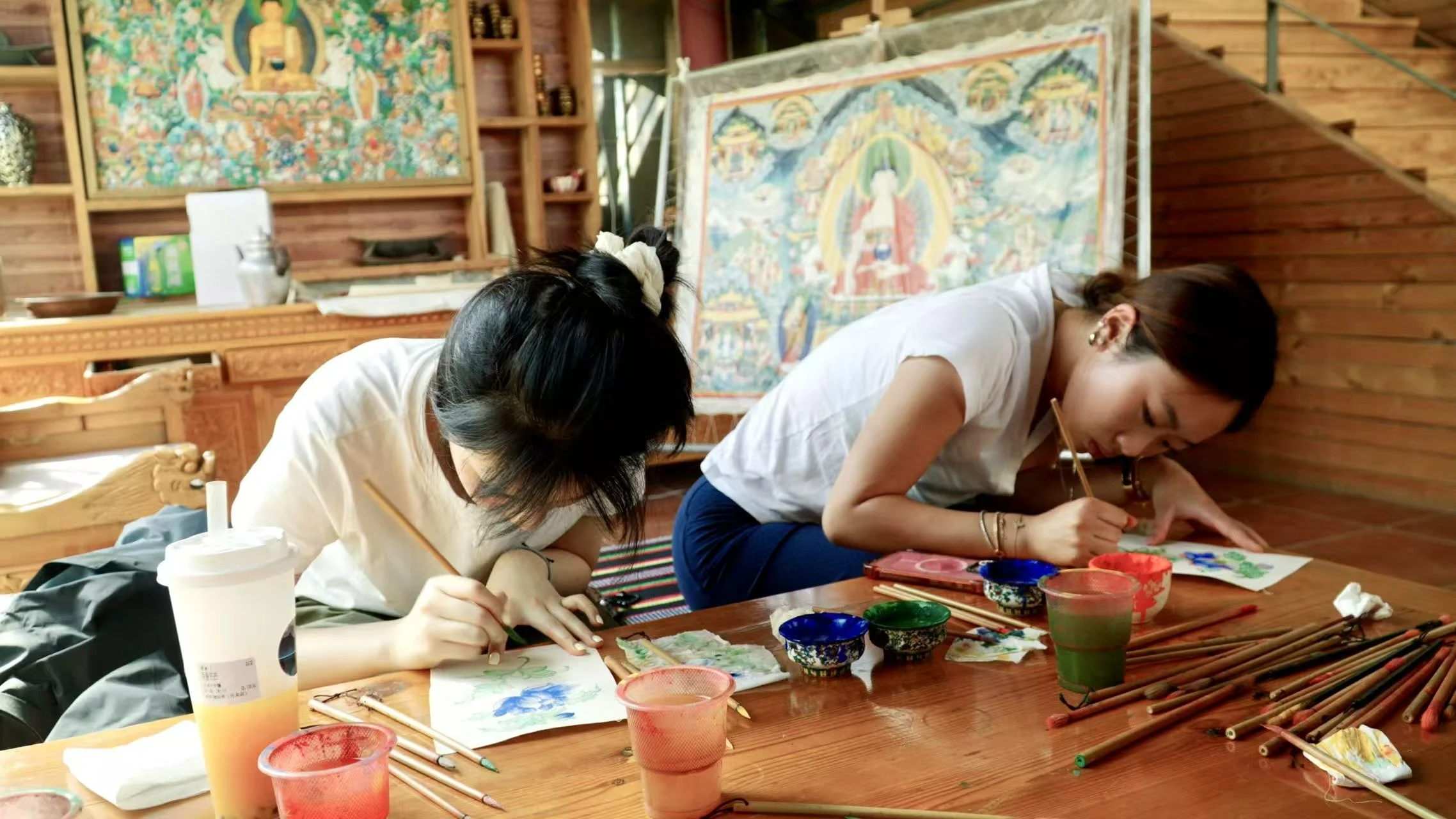 Beyond ecology and science, our summer research program is also about understanding culture and artistic expression. In addition to planting Saxaul trees and harvesting Cistanche, students immersed themselves in a Thangka (唐卡) painting lesson, an art form deeply rooted in Tibetan culture and spirituality.